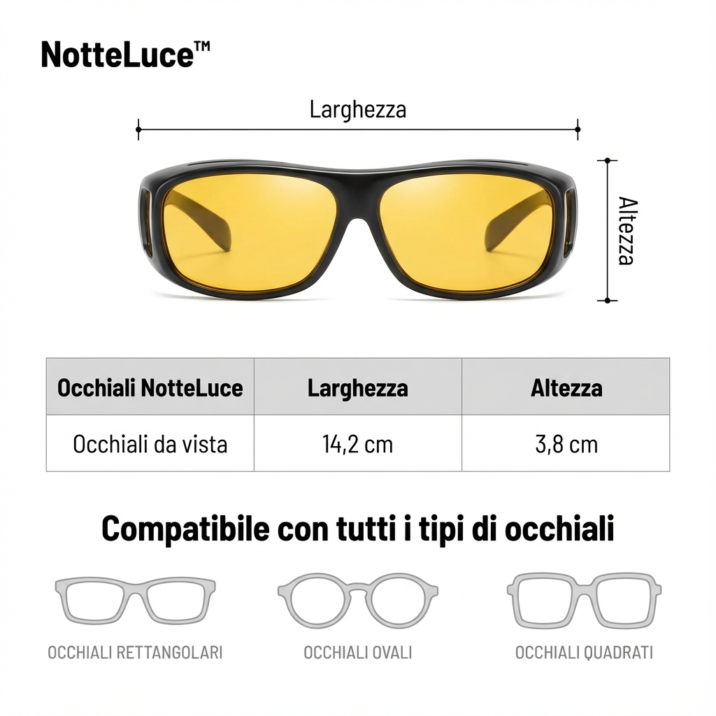 Sì, NotteLuce™ si indossa perfettamente sopra gli occhiali da vista.